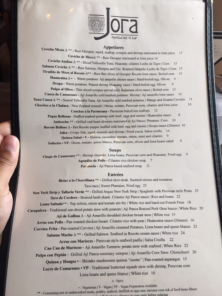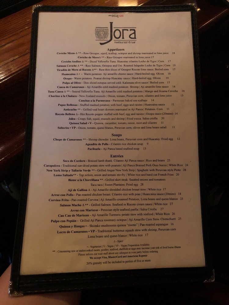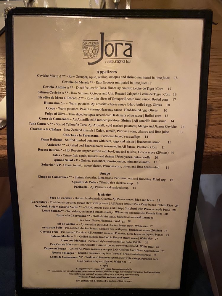"Jora, a Latinx-owned gem located in Long Island City, offers a unique dining experience with its vibrant menu. Featuring dishes like Ceviche Mixto with a delightful mix of seafood, and flavorful entrees like Seco de Cordero and Lomo Saltado, Jora delivers on authentic Peruvian cuisine. The beverage selection includes traditional options like Chicha Morada and Inca Kola, perfect for pairing with your meal. Customer reviews rave about the quality of dishes like the arroz con pollo and the ceviche. With a casual atmosphere and outdoor seating, Jora is a must-visit spot for food enthusiasts seeking a taste of Peru. Don't miss out on the opportunity to savor the bold flavors and hospitable service at Jora."